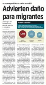 El gobierno de México evitó ser tercer país seguro con Estados Unidos; sin embargo, la ampliación del programa Permanecer anunciado en diciembre de 2018 por la administración de Donald Trump tensa al sistema de refugio en nuestro país, advierte Ana Saiz, directora de la organización no gubernamental Sin Fronteras. Como parte de los acuerdos alcanzados entre México y Estados Unidos para frenar la amenaza de Trump de imponer aranceles a las importaciones mexicanas, está el de ampliar el programa Protocolos de Protección a Migrantes (MPP conocido como Permanecer, y por el cual Estados Unidos envía a México a solicitantes de asilo que cruzaron la frontera mientras esperan la resolución de su proceso. La implementación de estos protocolos, fundamentados en la sección 235 (b) (2) (C) de la Ley de Inmigración y Nacionalidad estadunidense, fue anunciada en diciembre y entró en vigor en enero. (Ana Langner, La Jornada, p.6)