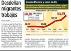 Ante las políticas antiinmigrantes del presidente estadounidense, Donald Trump, y el recrudecimiento de la violencia en México, aproximadamente 40 mil connacionales llegan a Canadá cada mes. La cifra es el doble de los arribos registrados en 2016, cuando fueron 251 mil y casi 21 mil mensuales, de acuerdo con Statistics Cañada. En el país de la hoja de maple reside la mayor cantidad de mexicanos en el extranjero, sólo después de Estados Unidos, con una cifra que supera los 100 mil, pero cuya tendencia es al alza, con la entrada anual de 25 mil jornaleros, 20 mil estudiantes internacionales y paseantes. (Isabel Inclán, El Universal, p. 1, 5)