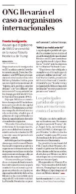 Amnistía Internacional (AI) consideró que la decisión de enviar efectivos de la Guardia Nacional para contener la migración de Centroamérica. solo confirma que México está extendiendo de forma simbólica el muro de Donald Trump a la frontera sur. ya que con ello se criminaliza a los migrantes. En entrevista con OEM. Tañía Reneaum Panszi, directora de Al, indicó que México se esta sometiendo a lo que dicta Washington, pero se debe tener claro que los gobiernos de México nunca han atendido con seriedad el fenómeno migratorio en la frontera sur, lo han administrado de forma distinta. Reneaum Panszi dejó claro que es muy grave que el presidente López Obrador concluya y haga un ejercicio en el que se piense que las personas migrantes deben ser tratadas por la policía y no por el Instituto Nacional de Migración (INM) o por la Comisión Mexicana de Ayuda a Refugiados (GOMAR) dijo en la charla. (Carlos Lara, El Sol de México, p.5; La Prensa, p. 19)