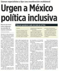 Abordar la crisis migratoria que enfrenta México requiere un replanteamiento de este fenómeno en el País. México ya no es considerado una nación de emigrantes, es de inmigrantes, y, por lo tanto, advierten especialistas, requiere de una política de inclusión para quienes llegan, regresan y las comunidades que los acogen. México sigue pensando en sí mismo como un País de emigrantes, es tiempo de pensar también a México como País de inmigrantes, y por tanto preguntamos qué estamos haciendo con la migración en tránsito y cómo vamos a proceder, señaló Allert Brown-Gort, director de la Casa de la Universidad de California en México, durante la presentación de los resultados del Taller Multidisciplinario Repensar México. (Estefanía Escobar, Reforma, p. 18)