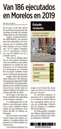 En lo que va del año, Morelos acumula al menos 186 ejecuciones al estilo del crimen organizado en 21 municipios.