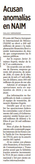 El costo del Nuevo Aeropuerto Internacional de México (NAIM) se elevó a 305 mil millones de pesos y la mala planeación financiera llevó a emitir instrumentos de deuda que comprometen las finanzas públicas.